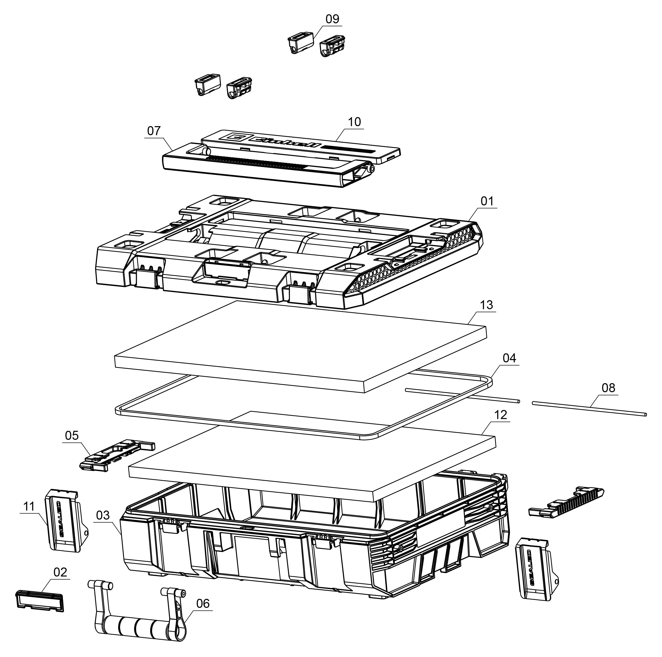 The Einhell E-Case S-F SEALED is part of the modular E-Case system and keeps everything organised in each and every situation. The robust system case can be safely stacked and even combined with Half-size E-Cases thanks to the sophisticated locking system. Thanks to the sealing ring integrated in the lid, the E-Case can withstand extreme conditions: The SEALED case is dust-proof and protected against water jets according to protection class IP65. With a height of 13 cm, a length of 44 cm and a width of 33 cm, the case offers generous storage space for machines, hand tools and accessories. The sturdy housing made of high-quality polypropylene is heat-resistant, impact-resistant and can be loaded with up to 90 kg. High-quality locking clips made of metal ensure maximum safety and longevity, which tightly seal the case. In addition, an integrated slot for a padlock offers the option to protect against unauthorized access. The ergonomically shaped carrying handle allows comfortable transport, even when fully loaded. The content can be easily labeled thanks to a transparent window for more organisation. The E-Case S-F SEALED comes with foam inserts in the lid and bottom to protect sensitive devices from impacts. For even more order and flexibility, the E-Case is compatible with the separately available side rails for adding various accessories such as a cup holder, the battery holder or a double hook.