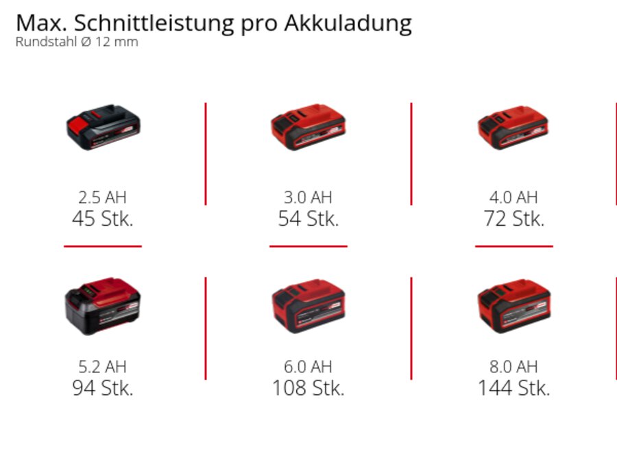 Die Nennleistung von kabelgebundenen Produkten wird gemäß IEC 62841-1 gemessen. Die entsprechende Leistung von batteriebetriebenen Produkten gibt die Leistung im Vergleich zu ähnlichen kabelgebundenen Produkten an, wenn eine Batterie mit hoher Leistung (4-6 Multi Ah oder 5-8 Multi Ah) verwendet wird.